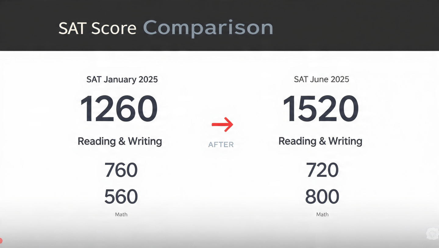 While building this SAT Math course, I wanted to make absolutely sure it worked. So I gave it to my own sister — no private tutor, no coaching center. Just the exact strategies I teach inside the course.
